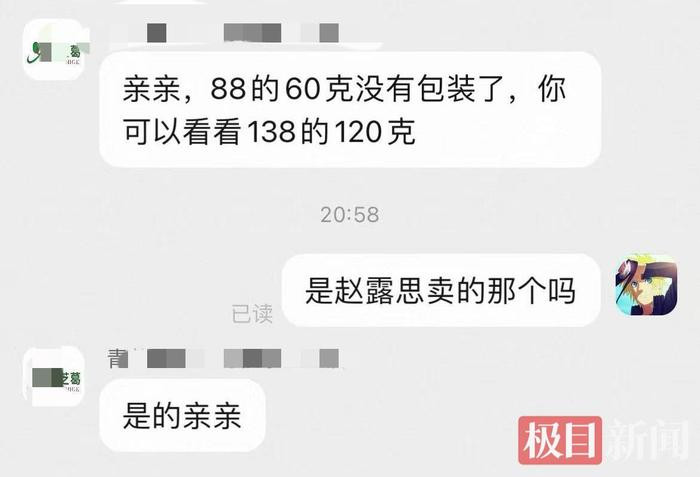 6日晚,极目新闻记者找到了这家卖葛根茶的店铺,客服回应称赵露思推荐的那款商品已经没有包装了,建议看看其他款商品。