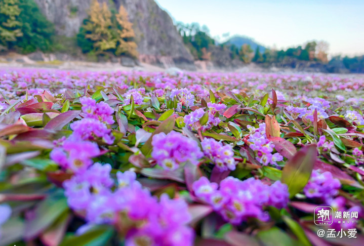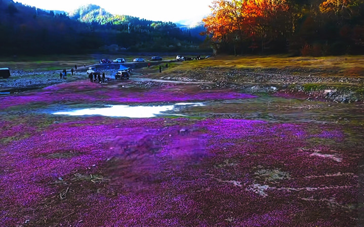 枯水期的滩涂像掀开了灰褐色幕布,鹅卵石硌得土地愈发坚硬,蓼子花却在这贫瘠处铺满裸露的地,粉紫与玫红交织的花毯,从脚边延向远山。这是贴地而生的细碎小花,茎秆细如绣花针,泛着浅紫红,却带着倔强的韧性——哪怕被碎石压住,也会侧着身子钻出,矮伏在赭黄泥地,既不扰滩涂的宁静,又藏着不屈的生机。