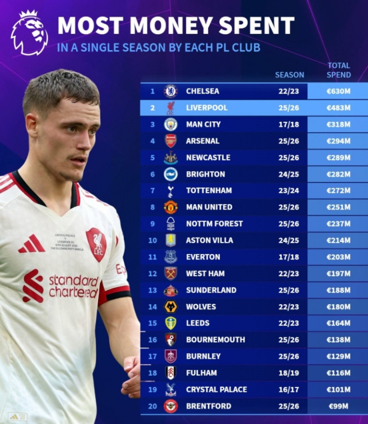 2.利物浦,25-26赛季,4.83亿