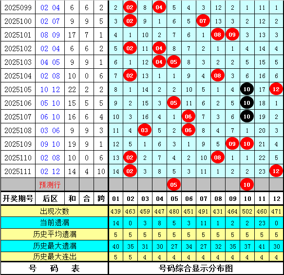 后区判断:上期后区奖号为02和12,开出热码+温码组合。最近十期后区开出11个热码、7个温码和2个冷码,本期预计奖号关注温码+热码组合,参考两码05、10。