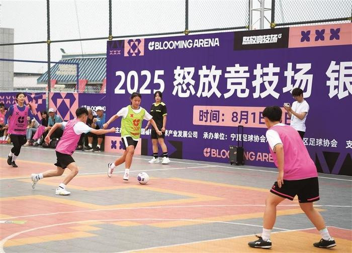 城市商圈的楼顶天台上,笼式运动场内正在进行一场炫酷的三人对抗赛,足球小将们自由组队比拼球技,尽情展示对足球运动的热爱。8月1日至3日,2025“怒放竞技场”银川站的比赛在兴庆区新百CCmall四楼运动公园天台举行,吸引了42支队伍、250余名足球爱好者参加。